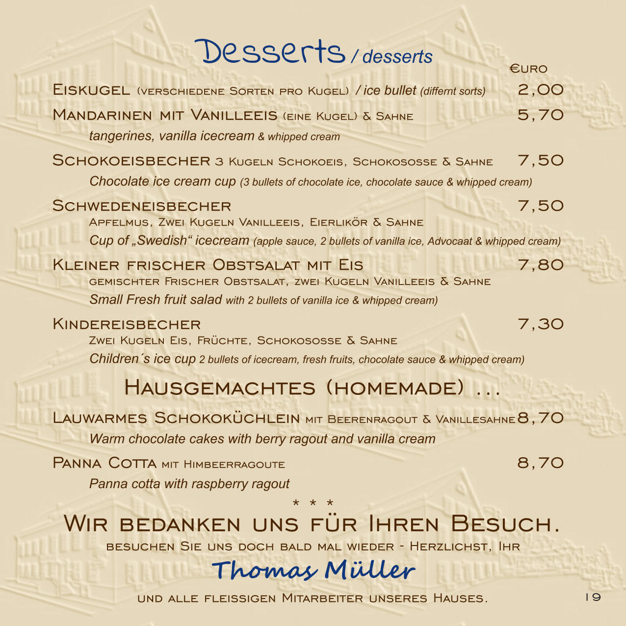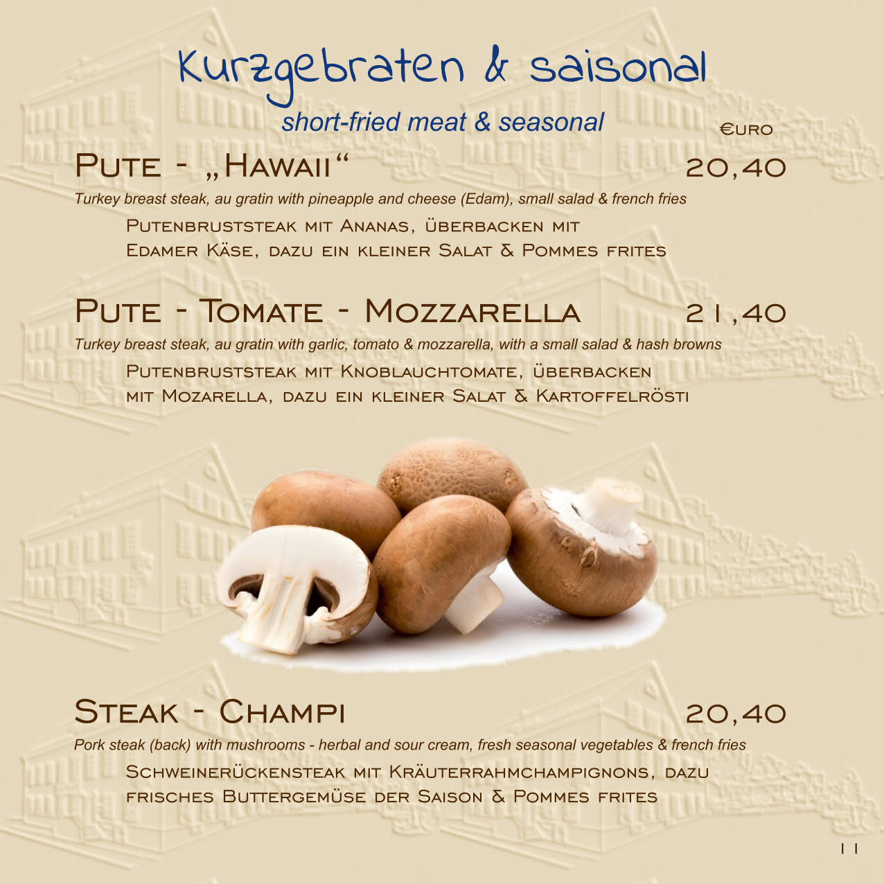 In der Ferienzeit haben wir wochentags einen zusätzlichen flexiblen Ruhetag, aktuelle Informationen finden Sie dazu in unserem Eintrag bei Google.